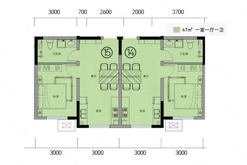 1 室 1 厅 1 卫