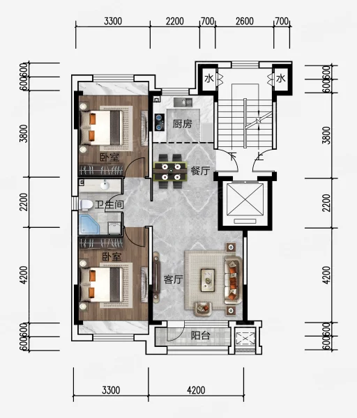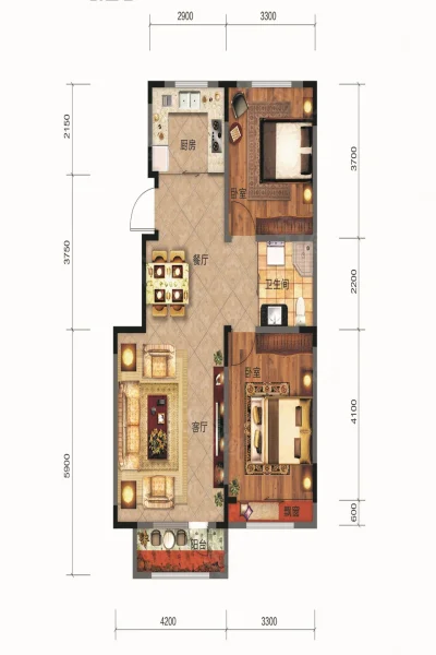 2 室 1 厅 2 卫