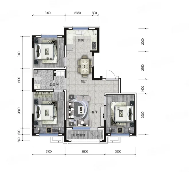 3 室 2 厅 2 卫